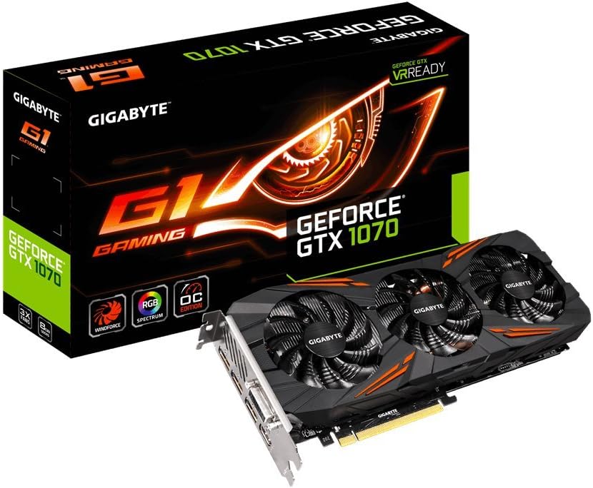 Gigabyte GeForce GTX 1070 G1 Gaming - Tarjeta gráfica de 8 GB (GDDR5, 16 nm, 1822 MHz/1620 MHz, DirectX 12, OpenGL 4.5)